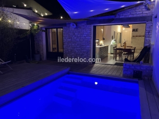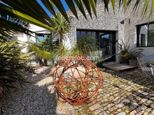 In the heart of Sainte-Marie-De-Re, a renovated former wine cellar for 11 people, with a heated swimming pool from April to the end of October, equipped with a secure sliding terrace and a counter-current swimming system.