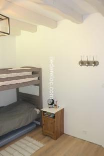The 2nd bedroom (12.7m²) has 2 bunk beds 90X 190, and a drawer bed (child's mattress)