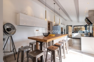 Located in Sainte-Marie-de-Re, in the heart of a privileged natural environment, this single-storey villa of 200 m² extends over a magnificent wooded plot of 3,500 m². Nestled below the main road, it benefits from a peaceful and unspoiled atmosphere, a true haven of greenery conducive to relaxation and serene stays. Designed to comfortably accommodate families and groups of friends, the property impresses with its generous proportions, comprehensive amenities, and numerous living spaces that open onto the outdoors. MAIN HOUSE The villa offers 5 elegant bedrooms, each equipped with king-size beds (180x200) and their own private bathroom, guaranteeing privacy and comfort for all occupants. The fifth bedroom is located in an original igloo-shaped annex, offering a unique and unusual experience while maintaining the comfort level of the main house. The vast living area includes: A large, fully equipped kitchen, ideal for sharing convivial moments; A bright living/dining room with a wood-burning stove; Underfloor heating ensuring Optimal comfort in every season