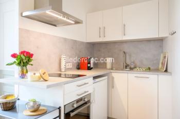 6 pleasant 2 rooms with 1 bedroom each, a double bed in the bedroom, a sofa bed in the living area, fully equipped open kitchen, mix oven, hood, induction hob, dishwasher, Nespresso, classic coffee maker, toaster, kettle , small fridge, small appliances, washing machine...