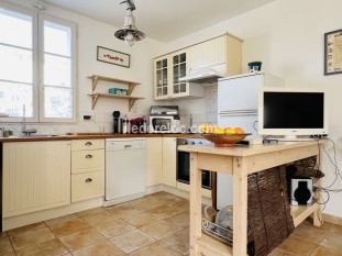 Come and enjoy a relaxing stay in this charming house located in Le Clos des Charitains, a stone's throw from the port of Saint-Martin-de-Ré and a 15-minute walk from the beach. The house features a spacious living area with an open-plan kitchen, lounge, and dining room, ideal for a comfortable stay. Upstairs, you will find two large, bright bedrooms, one with a 160cm double bed and the other with a 140cm single bed, as well as a shower room. The spaces are designed to comfortably accommodate up to 4 people in a simple and friendly atmosphere. Outside, you can enjoy a pleasant courtyard with an olive tree, perfect for al fresco dining thanks to the plancha grill. A true haven of relaxation after a day at the beach or a stroll through the village streets. The house is also equipped with a television and a washing machine for added comfort during your stay. Two parking spaces are available, a real advantage given its proximity to the town center. Without Wi-Fi, this house is the ideal place to disconnect and fully enjoy the Ré Island lifestyle, with its markets, harbor, bike rides, and beaches.